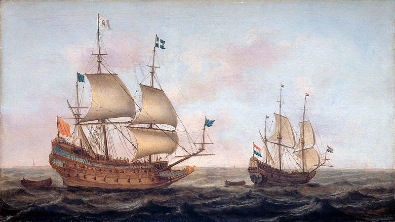 French man-of-war escorted by a Dutch ship in quiet water - By Jacob Gerritz. Loef between 1621 and 1670